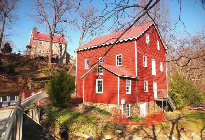 Heller-Wagner Grist Mill – Hellertown, PA, – was built circa 1760 by the Heller family, then sold to the Wagner family who operated the mill into the 1950s. Over time, the original 3-story building was enlarged and the water wheel replaced by water turbines that remain. The mill was restored in the late 1980s by local volunteers. The Borough of Hellertown owns the property which is maintained by the Hellertown Historical Society. The office in the miller’s house and museums in the mill and neighboring “barn” and are open to the public. The lower floor of the mill is available for rental for private functions. (March)